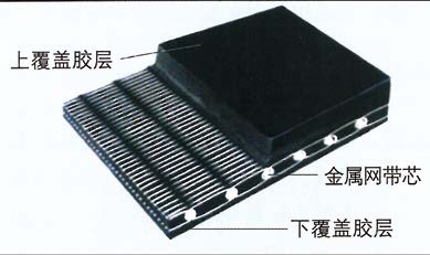 金属网芯输送带具有耐灼烧、耐高温、耐穿刺、抗撕裂、阻燃、伸长率小、层间粘合强度高、成槽性好、硫化接头效率 100%(接头与输送带同寿命)、接头操作时间短且简便易行等特点。