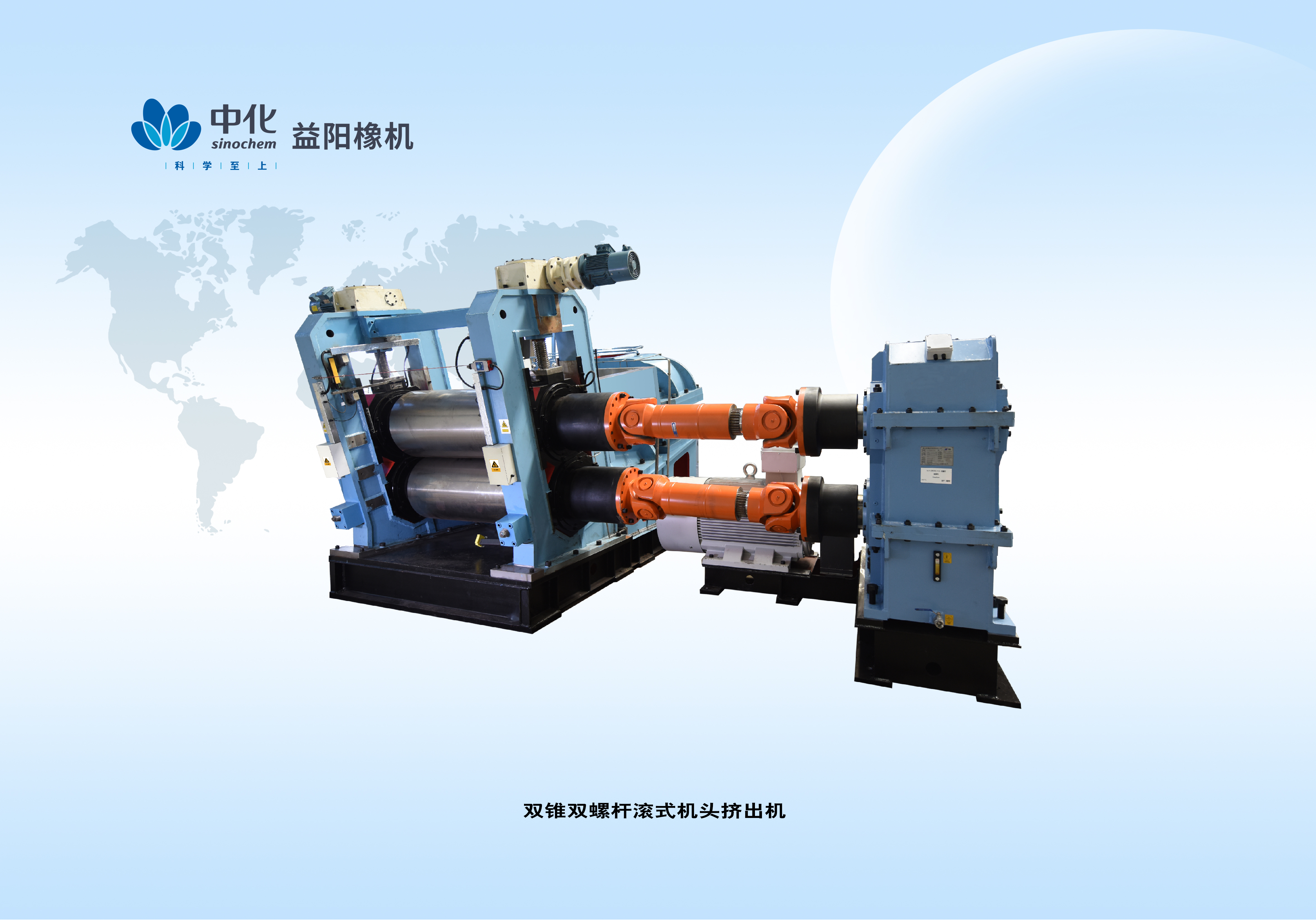 双螺杆挤出压片机是现代橡胶工业大规模生产所需重要设备,特别是在全钢子午线轮胎胶料加工中,是供密炼机作为下辅机挤出压机配套使用的关键性设备。