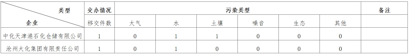 11月19日,中央第七生态环境保护督察组向九游官方网站转办第七批群众信访举报件2件(来电举报0件,来信举报2件)。从信访举报件中的生态环境问题类型来看(一件举报可能涉及多种问题类型),涉及大气0件、水2件、土壤1件、噪音0件、生态0件、其他污染0件。从企业分布上看,中化天津港石化仓储有限公司1件、沧州大化集团有限责任公司1件。
