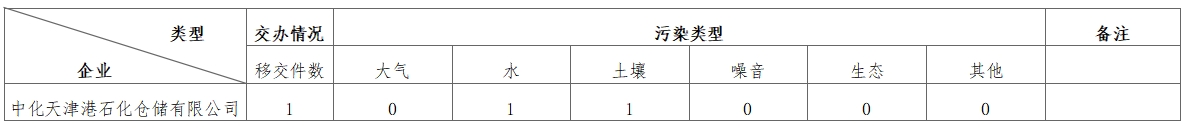 11月21日,中央第七生态环境保护督察组向九游官方网站转办第八批群众信访举报件1件(来电举报0件,来信举报1件)。从信访举报件中的生态环境问题类型来看(一件举报可能涉及多种问题类型),涉及大气0件、水1件、土壤1件、噪音0件、生态0件、其他污染0件。从企业分布上看,中化天津港石化仓储有限公司1件。
