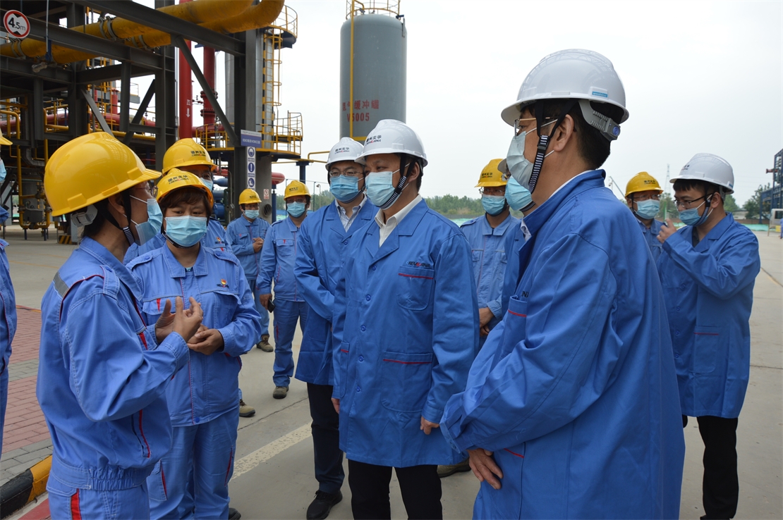 在德州实华厂区,王舸一行参观了EDC项目现场、中央控制室,深入了解 EDC项目建设历程、特点和优势,听取中国化工新材料公司和德州实华工作汇报,鼓励新材料公司和德州实华要积极抓住化工产品市场向好契机,持续加强自主创新能力,走出一条具有核心竞争力的发展道路。