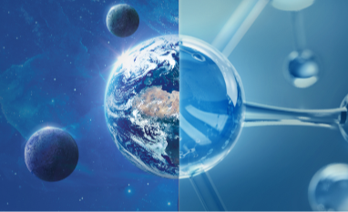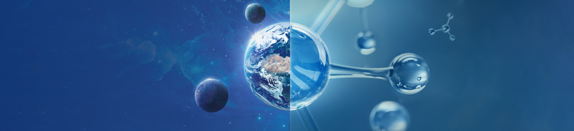 双蓝色递进的色调,彰显在中国中化,科学与创新力量共同驱动,化学与自然友好相融,公司发展与增进人类福祉共生共赢。