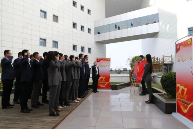 装备公司本部举办“学习二十大 奋进新征程”主题活动,号召广大干部职工守初心、担使命、找差距、抓落实,按照习近平总书记提出的“以中国式现代化全面推进中华民族伟大复兴”的部署要求真抓实干,锐意进取,凝心聚力共促公司改革发展事业。活动中,全体党员面向党旗重温入党誓词,不忘入党初心。干部职工们纷纷写下学习感悟并签名,表达决心,寄语希望。
