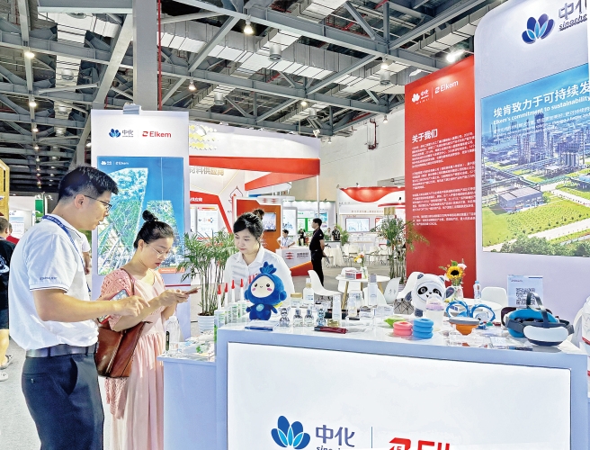 9月5日至8日,第六届世界绿色发展投资贸易博览会在江西南昌举行。这是在我国提出“双碳”目标后,国内第一个以绿色发展为主题的世界性博览会。埃肯有机硅携众多绿色新技术、新产品集中亮相。期间,中国中化副总经理、党组成员阳世昊赴埃肯有机硅展台巡展,详细了解参展产品技术、市场和应用情况,勉励埃肯有机硅继续加强技术攻关和应用开发。