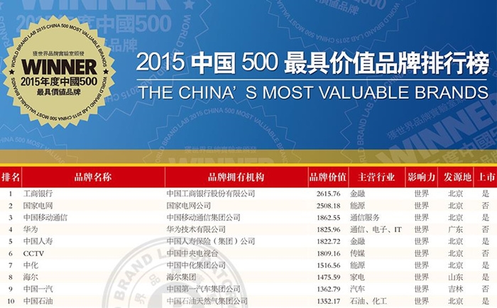 6月16日,在世界品牌实验室发布的2015年(第十二届)“中国500最具价值品牌排行榜”中,中化集团旗下的“中化”、“金茂”两个品牌分别以1516.56亿元和108.05亿元的品牌价值,位居榜单第7位和第228位。其中,“中化”品牌基于连续多年品牌价值的稳步增长,被评为“2015年度最佳表现品牌”。截至目前,“中化”品牌已连续12年、“金茂”品牌连续11年入围该榜单。 今年,入围“中国500最具价值品牌”的品牌总价值为108131.56亿元,平均每个品牌价值为216.26亿元,比上年平均值增加了30.88亿元,入围门槛也从去年的18.35亿元上升到20.16亿元。在这份基于财务分析、消费者行为分析和品牌强度分析的榜单中,排名前十的还有工商银行、国家电网、中国移动通信、华为、中国人寿、CCTV、海尔、中国一汽和中国石油等品牌。 |