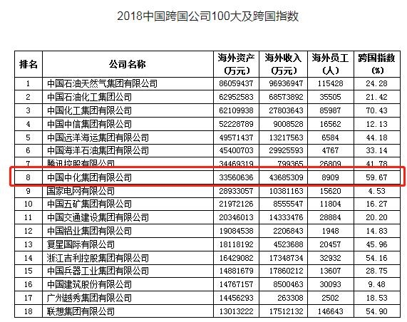 其中,中国中化集团有限公司位列“中国跨国公司100大”榜第8,跨国指数(59.67)位列第3。