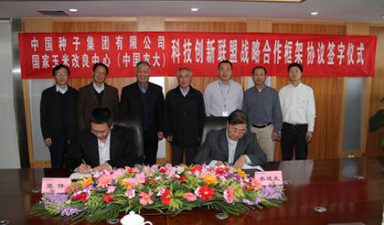 4月2日,我司下属中种公司与国家玉米改良中心在京签署《科技创新联盟战略合作框架协议》,正式宣布建立战略伙伴关系。集团公司总裁助理、中种公司总经理张伟与国家玉米改良中心主任李建生教授代表双方签约,国家玉米改良中心名誉主任、中国工程院院士戴景瑞院士等出席签约仪式。