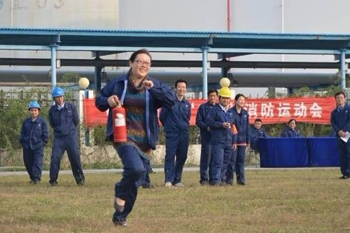 一年一度的“119”消防日来临之际,11月7日,中化集团下属中化扬州石化码头仓储有限公司(简称“中化扬州”)举办了消防运动会,以持续提升员工消防安全技能,凸显“人人参与消防、共创平安和谐”这一主题。相比往年,今年活动员工参与面更广,竞赛项目也有了新变化,除了以往一些消防技能、实战灭火等常规项目外,今年还新增了知识竞赛项目,给整个运动会增添了更多精彩。共有68人次参与了男、女两个组别共5个项目的比赛。 消防知识竞赛首先“开战”,各参赛队员注意力高度集中,反应神速,对答如流,比分始终咬合僵持;场下观众替场上选手捏把汗的同时,也被问答回合之间的消防知识所吸引,增长了见识。