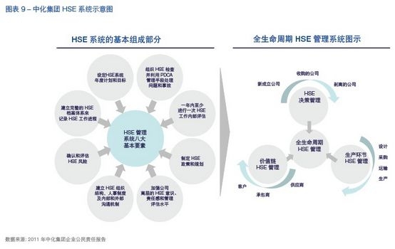 图为《中国企业国际化新兴最佳实践——全球企业公民挑战》报告中关于我司HSE管理案例的部分内容。 3月13日,世界经济论坛和波士顿咨询公司联合发布报告《中国企业国际化新兴最佳实践——全球企业公民挑战》,我司在HSE(健康、安全、环保)管理体系建设方面的实践作为优秀案例之一,入选该报告。 报告认为,“安全生产是企业治理实践的一个热门话题,也是中国企业在公司管理中重视程度较高的领域。中国中化集团公司在海外运营中树立了安全生产的典型。” 除我司外,该报告还包含了中国远洋运输、中国石油、中国铝业、中国五矿等中国企业在国际化进程中履行公民责任的优秀案例,体现了中国企业在海外发展中不仅注重自身经济利益,同时致力于为当地社区创造切实、长久的经济与社会效益。报告指出,“中国领先国际企业在开拓全球市场过程中正在积极履行全球企业公民责任。” 中化集团将企业社会责任视为企业基因的一部分,实现企业社会责任与企业经营管理的有机融合,其中,HSE是公司履行社会责任的重要内容。基于多年HSE工作成果,我司将国内外先进理念、制度和方法与公司多元化属性有机融合,持续推进具有中化特色的HSE管理体系建设,并在决策管理、生产以及价值链中的各环节开展全生命周期HSE管理。 以我司阿联酋海上气田UAQ项目为例,得益于公司一整套覆盖整个业务全生命周期的HSE管理系统,该项目从源头管理入手,在投产运营之初充分考虑HSE的本质安全性,并通过有效管理避免各类事故的发生。截至2012年3月15日,该项目实现安全运行生产1413天。