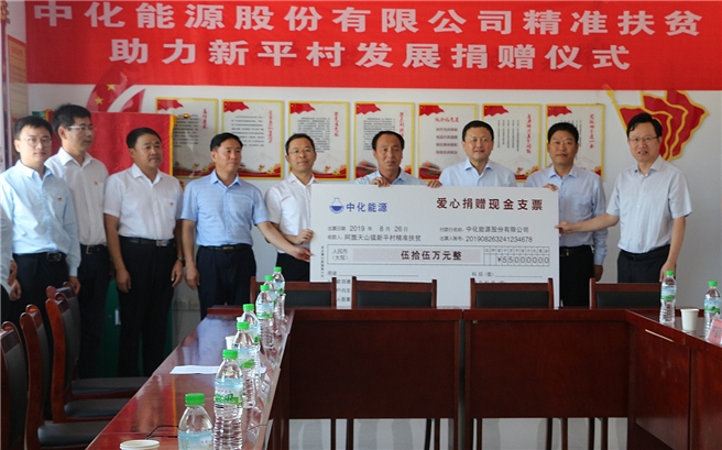 8月21日,中化集团副总裁、中化能源总裁江正洪赴内蒙古自治区阿鲁科尔沁旗(简称阿旗)开展脱贫攻坚调研和爱心捐赠活动。 上午,在内蒙古自治区赤峰副市长辛华东,阿旗旗长孟晓冰等当地领导的陪同下,江正洪一行调研了集团定点帮扶村——天山镇新平村。江正洪听取中化扶贫干部、新平村第一书记李明关于该村扶贫工作和产业发展情况的汇报,并实地参观我司帮扶建设的杂粮加工基地。江正洪代表中化能源向新平村捐赠55万元用于林下养殖项目,并深入当地贫困户家中,了解情况、送上慰问金,鼓励大家努力脱贫致富。