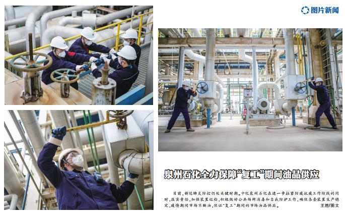 目前,新冠肺炎防控仍处关键时期。中化泉州石化在进一步拉紧防疫抗疫工作防线的同时,压实责任,加强装置巡检,积极做好公共场所消毒和自我防护工作,确保各套装置生产稳定,疫情期间市场不断油,保证“复工”期间的市场油品供应。王胜/图文