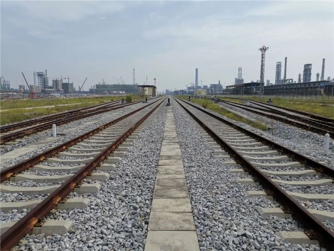 开通进厂铁路前,中化泉州石化产品内销主要依靠公路运输和部分水运,中转环节较多。对比公路、海运,铁路运输安全性更高,特别是在恶劣天气、特殊环境下,铁路运输相对更稳定。因此,为实现石油石化产品在厂内大批量装车外运,大幅降低运输成本,提升产品在石化行业的竞争力,铁路专用线修建被提上日程。项目建设启动以来,作为储运物流系统的重要配套设施,得到了福建省、泉州市政府和福建铁路办公室、泉州市铁路办公室的大力支持,各项审批工作进入快车道。 中化泉州石化铁路专用线起点到接轨站区间长度1.73公里,厂内线路总长度17.4公里,设有洗罐线4条,装车线7条,并接入湄南支线,可抵达全国各地,每年运输量最高可达200万吨。从此,中化泉州石化高品质油品,将通过中化石油销售公司的终端销售体系,覆盖更广阔的中西部地区,为广大客户提供优质能源保障。