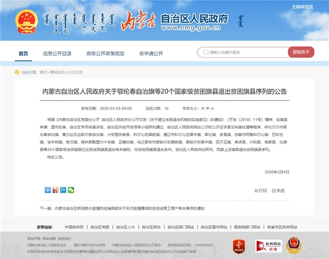 3月5日,内蒙古自治区人民政府发布公告,中化集团定点帮扶地区赤峰市阿鲁科尔沁旗(简称阿旗)正式退出贫困旗县序列。至此,中化集团对口支援及定点帮扶的内蒙古、西藏、青海3省区7个受援地全部退出贫困县序列,为打赢脱贫攻坚战交出圆满答卷。 这7个受援地按脱贫顺序依次为内蒙古和林格尔县、内蒙古清水河县、内蒙古林西县、青海大柴旦地区、青海德令哈市、西藏岗巴县和内蒙古阿旗。 2002年,按照党中央、国务院统一部署,中化集团作为首批16家中央企业之一,先后承接了对口支援西藏、青海和定点帮扶内蒙古的任务。18年来,中化集团牢记党和国家的重托,提高政治站位,强化使命担当,扎实开展扶贫援助工作。截至目前,中化集团已派出支援扶贫干部40人次,投入帮扶资金6.16亿元,实施援助项目186个,并充分发挥经营优势,大力开展产业扶贫、消费扶贫、就业扶贫、智志双扶,有力支援当地经济社会发展和民生改善。作为“中央企业贫困地区产业投资基金”首批发起单位之一,中化集团共出资3.02亿元,以实际行动积极响应国家脱贫攻坚战略。自2015年来,中化集团连续6年实施“圆梦助学”行动,公司与广大员工共同捐资累计480万元,一对一帮助受援地3600多名贫困学生完成学业。