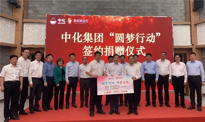 图为2019年中化集团在阿旗举行“圆梦行动”签约捐赠 中化集团务实、高效的扶贫工作成绩得到主管部门和社会各界的广泛赞赏,公司曾荣获“央企年度扶贫责任企业奖”“内蒙古自治区脱贫攻坚先进集体奖”等多项荣誉;中化扶贫干部胡燕祥获评“感动内蒙古十大人物”“赤峰市脱贫攻坚先进个人”荣誉,中化扶贫干部胡燕祥吕海涛获评“赤峰市优秀第一书记”荣誉。