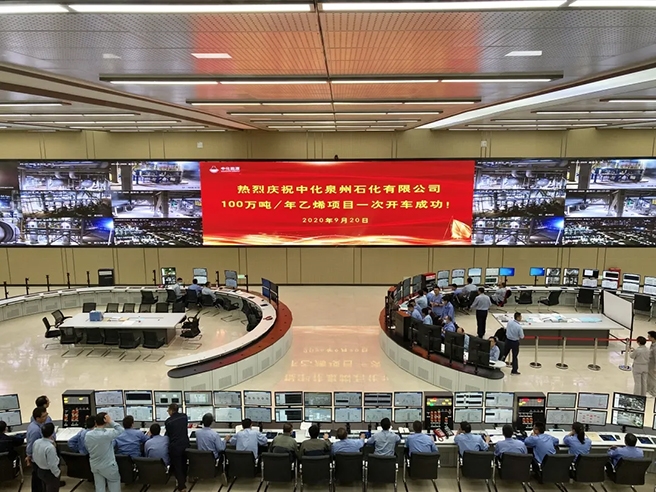 图为2020年9月,中化泉州石化100万吨/年乙烯项目一次开车成功时的中控室现场