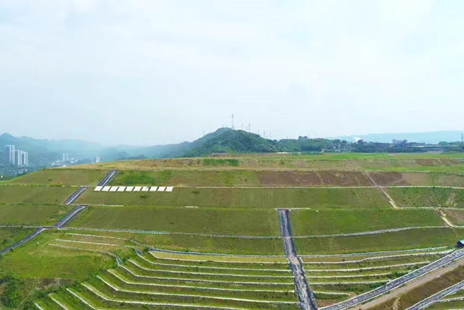 图为经过高标准治理的绿意盎然的中化涪陵磷石膏库