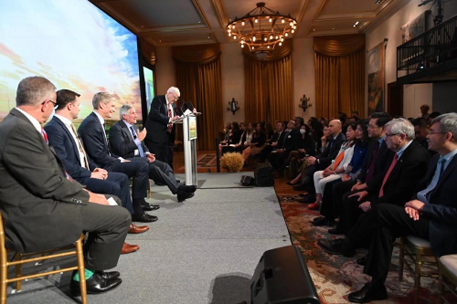 秦刚在中美农业高层研讨会上发表主旨演讲时表示,此次走进美国的腹地,是一次“心之旅”,推动和睦与信任,同时也是促进中美农业农村合作。中国是最大的农产品进口国,美国是最大的农产品出口国,中国人民对美好生活的需求与美国优质农产品供应和先进农业技术相遇,为中美农业合作打开了空间。从战略角度推动中美农业互利合作,既有利于丰富中国老百姓的“粮袋子”,增加美国农民的“钱袋子”,也有利于减少全球粮食供应的不稳定性和不确定性,同时有利于全球应对气候变化的努力。 秦刚强调,中美作为农业大国和农产品贸易大国,应携手应对挑战,保持农业稳定发展,增强农产品供应链韧性,保障本国粮食安全,并积极促进国际粮食安全合作,必将有利于维护世界和平、促进全球经济发展和社会稳定,推动人类可持续发展。 傅文德出席会议并表示,中国人民十分热情淳朴,和美国人民有很多相似之处,两国需要更多交流机会了解彼此。全球粮食安全现在已从一个“议题”发展成为亟需解决的挑战。中美合作有助于解决这一难题。