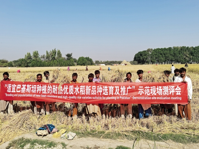 近日,先正达集团中国种业下属荃银高科出口巴基斯坦的2150吨杂交水稻种子全部发货完毕,开往巴基斯坦卡拉奇港口,将为当地粮食生产提供优质种源。 荃银高科杂交水稻种子比当地品种平均亩产增产40%以上。2021年,荃银高科出口巴基斯坦的杂交水稻种子超5500吨,约占巴基斯坦进口中国杂交水稻种子总量的40%。 多年来,荃银高科致力于在全球推广中国优良杂交水稻品种和种植技术。除巴基斯坦外,荃银高科还向孟加拉、菲律宾、安哥拉等十多个国家出口杂交水稻种子,获得当地市场认可和欢迎。图为12月初召开的“适宜巴基斯坦种植的耐热优质水稻新品种选育及推广”示范测评会现场。