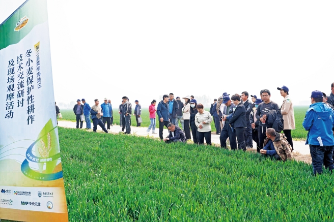 4月10日,由先正达集团中国联合中国农业大学、农业农村部华北耕地保育重点实验室及河北省农林科学院旱作农业研究所主办的第三届黄淮海地区冬小麦保护性耕作技术交流研讨及现场观摩活动在河北省衡水市举行。活动现场正式发布中化农业MAP“迈保丰”保护性耕作丰产增效技术方案。 该技术方案是以保护性耕作技术为核心,结合中化农业MAP良种、良法、良机、良技应用的综合解决方案。田间试验表明,采用中化农业MAP保护性耕作的小麦成穗率和亩穗数更高,抗冻抗旱能力更强。同时,该技术可有效减少土壤扰动,有助于更好保护农田土壤和减少温室气体排放,促进农业可持续发展。