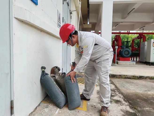 台风“摩羯”登陆前,中化广东仓储全体员工密切关注台风预警信息,全力以赴落实各项防洪应急准备工作,力求最大限度降低台风带来的影响,守护园区安全。公司重点聚焦园区排水情况,防止积水隐患;清理屋面杂物,避免被台风刮落造成危险;对防洪物资储备情况进行认真核查,确保物资充足可用。