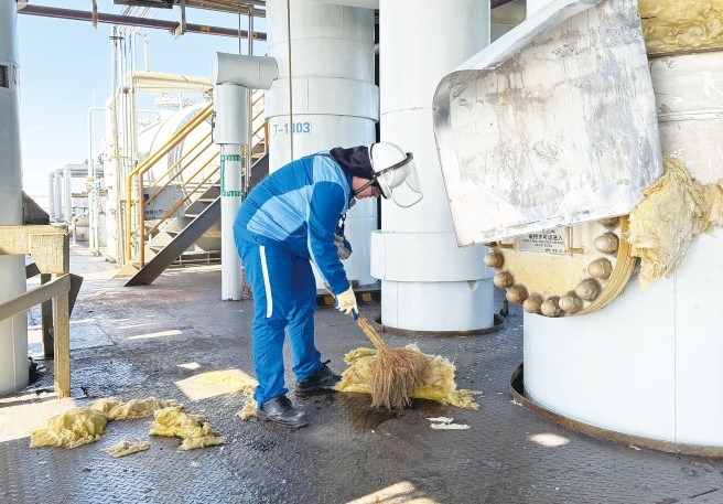 “贝碧嘉”台风来袭前,中化蓝天太仓基地各车间组织开展专项防台风排查,清理固定装置上的物资、设施等,加派岗位人手,提高应急能力。台风过后,太仓基地各车间立即组织对生产现场进行隐患排查,做好清理恢复,对发现的安全隐患进行妥善处理,全力以赴确保各生产装置安全平稳运行。
