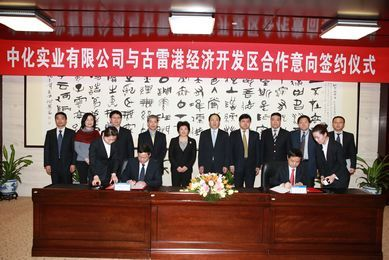 3月8日,我司下属中化实业有限公司与漳州市古雷港经济开发区管委会在京签署了石化仓储项目合作意向书。根据意向书,中化实业计划在古雷港投资建设380万立方米仓储库区并配套相应码头,为古雷港经济开发区内石化企业提供高水准的第三方仓储物流服务。