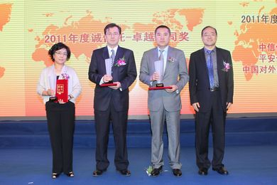 图为外贸信托负责人(左二)领奖。 6月20日,在第六届“诚信托”奖颁典礼暨2012中国信托业峰会上,我司下属中国对外经济贸易信托有限公司(简称“外贸信托”)第六次蝉联“诚信托•卓越公司奖”,同时,外贸信托旗下的“鑫欣8号”矿业股权并购基金集合信托计划获得“诚信托•价值信托产品奖”。 其中,“卓越公司奖”是诚信托历届评选的最高奖项,获奖单位必须在利润指标、信托规模、诚信建设、产品创新、风险管控、服务理念、企业文化等方面处于公认的行业领先地位。2011年,外贸信托秉持“稳健思变,诚客礼才”的经营理念,通过采取专业化和差异化的经营策略,在严控风险的前提下大力拓展信托业务,重视人力资源建设和产品创新,积极完善公司的治理结构,取得了良好的经营业绩,营业收入和税前利润双双突破10亿元。 另外,此次获得“价值信托产品奖”的“鑫欣8号”矿业股权并购基金集合信托计划总规模高达11.2亿元,是截至目前信托行业规模最大的矿产类集合信托计划之一。该产品以矿业并购整合为主题,充分发挥信托的灵活和金融杠杆作用,支持国家的产业整合政策,帮助客户完成锁定优质资源的并购交易。 “诚信托”奖评选活动由上海证券报主办,自2007年设立以来,“诚信托”奖评选因其权威性和专业性,业已成为我国信托业界最有影响力的评选活动之一。 |