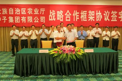 8月31日,我司下属中国种子集团有限公司(简称“中种公司”)与广西壮族自治区农业厅在南宁签署战略合作框架协议。双方将在“品种推广、资源整合、基地建设、信息共享、人才培养、国际业务”六个方面开展合作,充分发挥各自优势,为推动广西农业现代化建设和经济社会发展做出积极贡献。 集团公司总裁助理、中种公司总经理张学工与广西农业厅厅长张明沛分别代表双方在合作协议书上签字。广西壮族自治区副主席陈章良出席签约仪式。 在广西期间,张总会见了广西壮族自治区党委副书记危朝安,双方围绕共同推动广西构建“育繁推一体化”的现代农作物种业体系等话题进行了充分交流。张总还应邀对当地农作物种业的发展情况进行了实地调研,分别与广西农业科学院党委书记曾东、广西农业职业技术学院院长俞健和百色市副市长罗试坚等举行会谈。 |