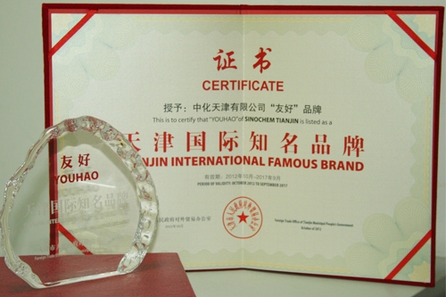 12月19日,中化集团下属中化天津有限公司的染料品牌——“友好”牌获天津市对外贸易办公室、天津市商务委联合授予的“天津国际知名品牌”称号。