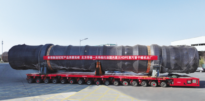 近日,由装备公司所属天华院为北方华锦联合石化有限公司聚乙烯项目设计制造的国内最大高密度聚乙烯(HDPE)蒸汽管干燥机正式出厂,可满足30万吨级高密度聚乙烯生产线的配套需求。