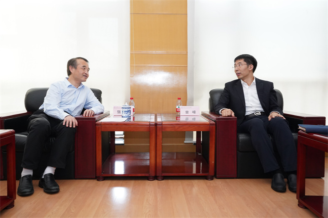 图为张方与曾嵘会谈 图为张方一行与中国科学院院士杨万泰、清华大学化工系教师座谈交流