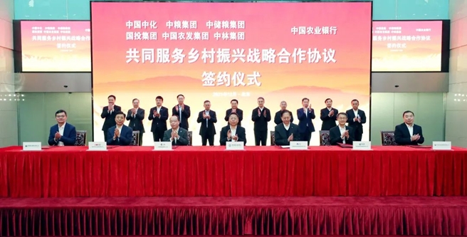 12月3日,中国中化董事长、党组书记宁高宁出席国务院国资委、中央企业与中国农业银行《共同服务乡村振兴战略合作协议》签约仪式。此次签约旨在认真学习贯彻习近平总书记关于“三农”工作重要论述精神,进一步深化合作、携手共进,不断做强做优做大国有资本和国有企业,为加快农业农村现代化、更好促进共同富裕作出更大贡献。国务院国资委党委书记、主任郝鹏出席签约仪式并讲话。中国农业银行、中粮集团、中储粮集团、国投集团、中国农发集团、中林集团主要负责人出席签约仪式。 郝鹏表示,近年来国资央企坚决贯彻落实习近平总书记重要指示精神,为助力农业高质量发展、打赢脱贫攻坚战作出了积极贡献。希望中央企业与中国农业银行进一步深化务实合作,更好服务国家战略,加大粮食安全领域投入力度,促进粮食产业加快转型,推动种业科技自立自强、种源自主可控,强化工业机械装备支撑,共同促进农业发展;坚定践行为民宗旨,接续投入帮扶资金、开展帮扶项目、创新帮扶举措,不断提升帮扶实效,在基础建设、产业投资、就业支持等方面聚焦聚力,更好促进农业高质高效、乡村宜居宜业、农民富裕富足;加快绿色低碳转型,以绿色低碳新技术、新模式、新业态大力推进绿色农业发展,共同推动生态文明建设,助力打造美丽乡村;积极创造银企合作模式,聚焦主业、突出实业,充分利用专业化金融服务优势,将产融结合作为发展智慧农业、特色农业,实现产业转型升级的重要支撑,大力提升发展质量效益,共同促进产融结合,实现高质量发展。 在签约仪式上,中国中化及其他五家央企与中国农业银行集中签署《共同服务乡村振兴战略合作协议》。同时,中国中化还与中国农业银行签署《全面战略合作协议》。根据协议,双方将按照“长期合作、共谋发展”的原则,充分发挥各自优势资源,重点在党建共建、授信、企业金融业务、个人金融服务等方面建立全面战略合作关系。中国中化总会计师杨林代表公司签署协议,国务院国资委主任郝鹏、副主任袁野,中国农业银行董事长谷澍、中国农业银行行长张青松,中国中化董事长宁高宁等见证签约。 |