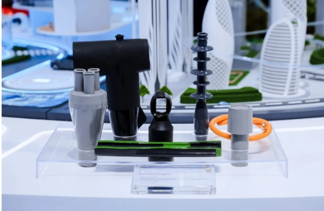 亮点四:智慧城市新“硅”途 在智慧城市领域,埃肯有机硅展示了一系列专为有机硅橡胶电缆配件定制的通用产品系列与配方组合,如采用BLUESIL™ EP系列材料制造的冷缩电缆附件与插拔头等产品,为绿色电力能源行业带来安全保障与性能提升。