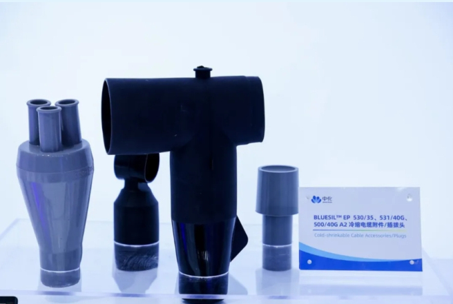 亮点3:多元布局 助力新能源产业发展 中国中化是新能源领域用化工新材料供应品种数量和供应规模均领先的中央企业之一,构建了以锂电池、风电、光伏产业用关键材料为重点,品种丰富、技术领先的新能源化工新材料产业体系。 光伏绿电 中国中化带来在光伏、绿电领域最新成果:高性能含氟膜材料PVF薄膜有助于实现光伏组件轻量化,也是新能源、建筑、防腐等领域的重要原材料;采用BLUESIL™ EP系列材料制造的冷缩电缆附件与插拔头,具有极低的拉伸永久变形率、卓越的断裂伸长率以及强大的抗撕裂性能,是绿色电力设施的理想之选。