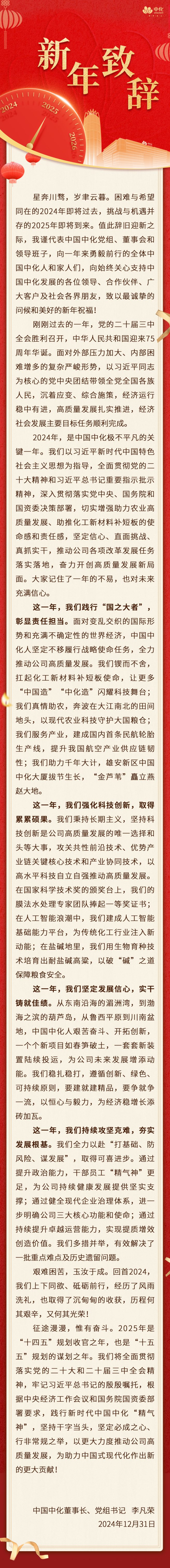 中国中化董事长、党组书记李凡荣新年致辞