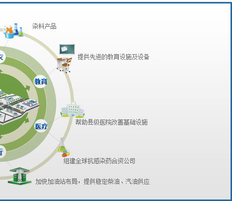 特别是我司五大板块结合各自业务特点,在服务衣、食、住、行以及协助改善医疗、教育基础设施等方面为提升民众幸福指数所做的贡献。