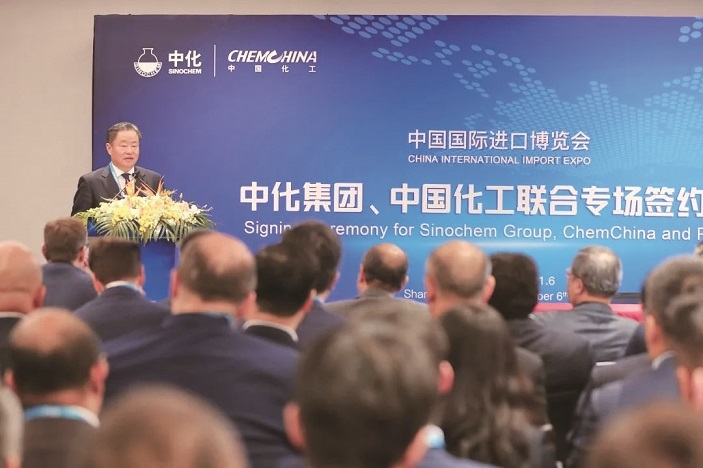 中化集团和中国化工联合举办进博会专场签约活动 11月6日,中化集团和中国化工在第二届中国国际进口博览会(简称进博会)上联合举办专场签约活动并发布交易成果。两家公司共与30家客户现场签订合作协议。 在签约成果发布环节,媒体就两化联合开展签约的初衷、安迪苏在中国市场的机遇、中国企业国际化经营和海外市场开拓以及科技创新话题现场提问,中化集团董事长宁高宁、中化集团总经理杨华、中国化工副总经理胡徐腾、安迪苏CEO让马克分别回答记者提问。