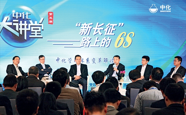 新长征路上的6S—— 中化集团第五期“中化大讲堂”实录 “中化为什么要建立6S体系?” “今年中化业绩好,员工奖金是否也会有调整?” “中化经理人考核制度中,有哪些退出机制?” “对于6S体系,集团、事业部和BU的职责分别是什么?” “公司如何平衡高速发展和财务稳健之间的关系?” …… 2017年12月15日,中化集团第五期“中化大讲堂”如期开讲。本次大讲堂以“新长征路上的6S”为主题,邀请了集团总裁张伟、集团创新战略部总监张方、战略执行部总监张学工、副总监王红军、审计合规部总监张宝红、人力资源部副总监刘兴等6S项目组相关负责人作为对话嘉宾,与员工开展面对面交流。 活动吸引了员工广泛关注,现场参会人员超过200人,还有一千多名员工通过40多个视频分会场参与全过程。 在宣讲环节,管理创新工程工作小组组长张宝红围绕中化推行6S体系的背景、内容、特点等做了重点介绍。对话环节,张伟总裁等就大家关心的集团战略定位、考核评价、薪酬激励等问题与观众进行交流。