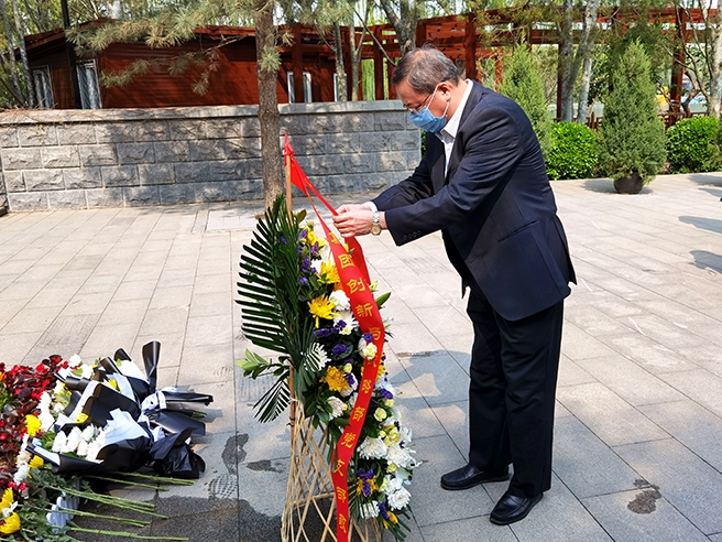 为深入学习贯彻习近平总书记关于崇尚英雄、缅怀英烈的重要论述,中化集团各级党组织坚持把党史学习教育与清明祭奠祭扫相结合,就近就便开展“思先烈、忆党史、铭党恩”主题党日活动,缅怀革命先烈、弘扬英烈精神、牢记初心使命、激发奋进力量。中化集团党组及领导班子成员纷纷以普通党员身份带头参加“清明祭英烈”活动。除宁总参加集团办公室第一党支部赴毛主席纪念堂主题党日活动外,集团党组副书记、董事、总经理杨华参加集团创战部党支部主题党日活动,赴高君宇烈士墓祭奠祭扫,重温入党誓词,坚定理想信念。