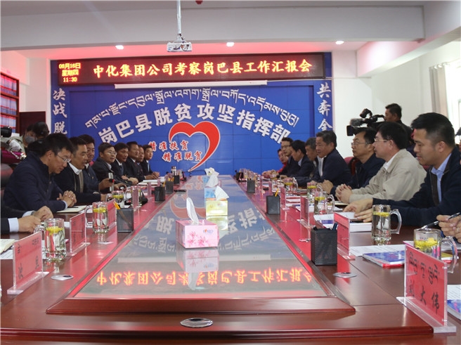 2018年8月16日,中化集团党组书记、董事长宁高宁考察指导援藏工作,并慰问藏区牧民 自2002年中化集团对口支援西藏日喀则市岗巴县,共派出援藏干部六批12人次,累计投入援藏资金1.3亿元,在资金、项目和人才等方面对岗巴县给予了大力支持和无私援助,岗巴县2017年地区生产总值4.32亿元,比2001年增加781%,地方财政收入1540万元,比2001年增加1295%;农牧民人均收入10785元,比2001年增加603%,截止年初,全县25个行政村实现有序退出,4个乡(镇)全面脱贫,全县贫困发生率减低到1.88%。持续不断的扶贫援助,有力促进了受援地经济社会发展和社会稳定,改善了当地农牧民的生产生活条件,为边疆地区藏族同胞实现小康梦奠定了坚实基础。