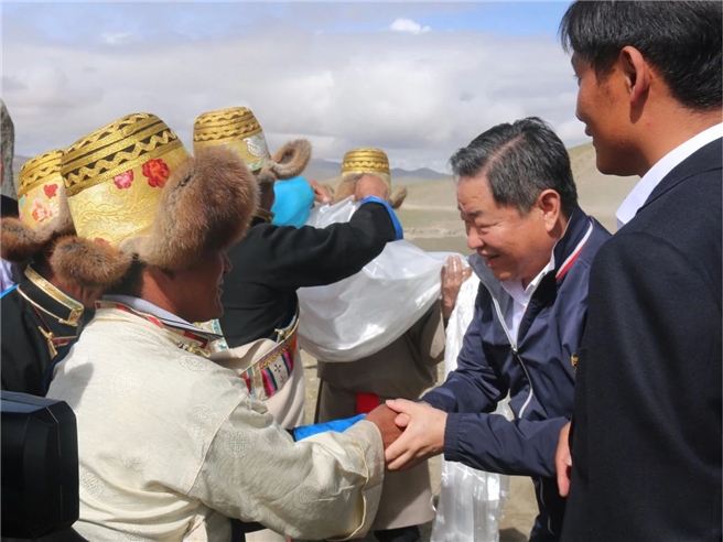 8月15日,宁高宁一行来到日喀则市,会见西藏自治区副主席、日喀则市委书记张延清等当地领导。张延清副主席对宁总一行的到来表示热忱欢迎。他谈到,中化集团的援藏工作政治站位高、重视程度高、支援力度大、援助项目实、干部素质强,各项工作一直走在央企援藏的前列。他对中化十六年来为日喀则经济社会发展做出的不懈努力和突出贡献表示由衷感谢。