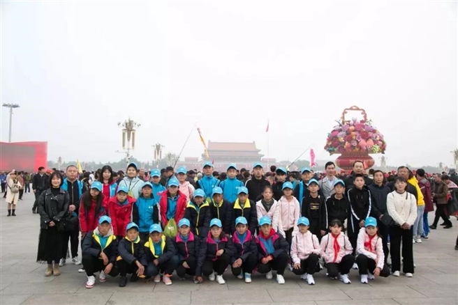 来自中化集团五大事业部的爱心人士代表们,向师生们赠送精美的学习书籍,鼓励同学们勤奋学习。 “如果能去首都,我最想去天安门观看升国旗仪式!”这是同学们来京之前的心愿。为了给同学们圆梦,凌晨四点天未亮,中化青年志愿者们就组织师生们前往世界最大的城市中心广场——天安门广场。当国歌响起、五星红旗冉冉升起的那一刻,师生们激动得热泪盈眶,爱国之情油然而生,大家饱含深情地喊出“我爱你,中国”!