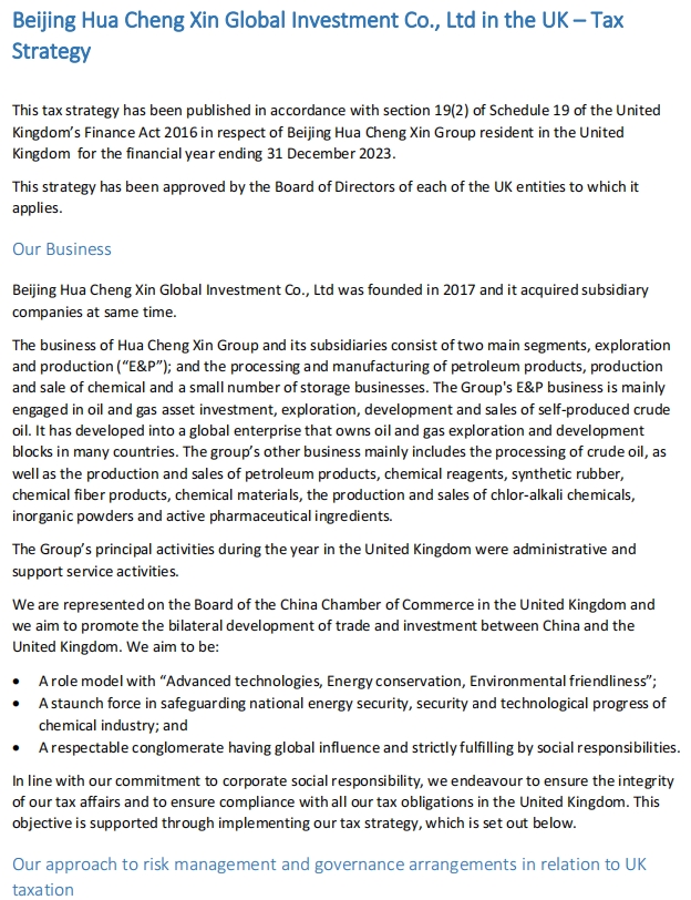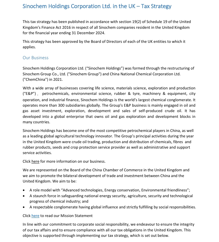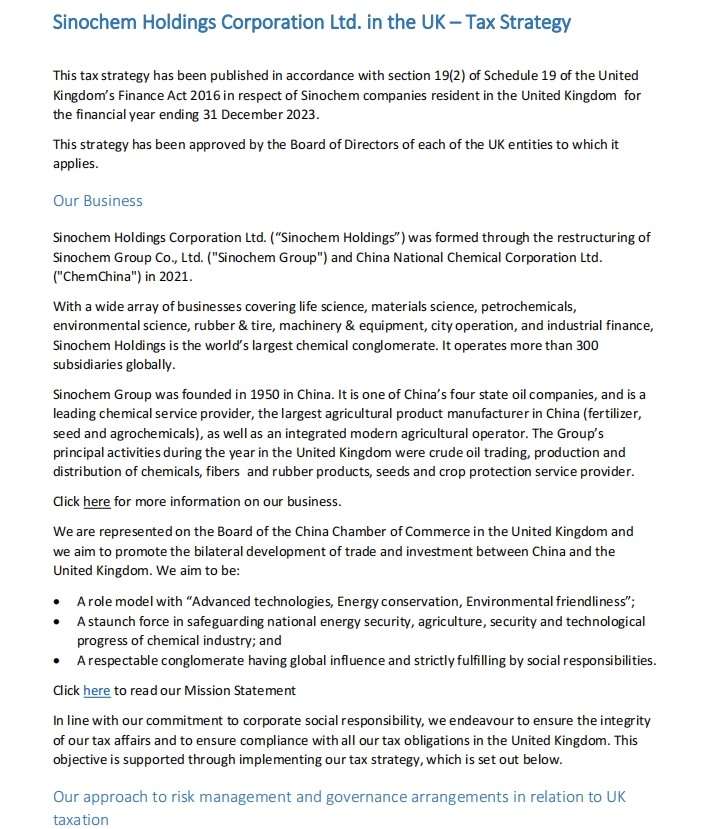 Sinochem Group companies in the UK – Tax Strategy-2024