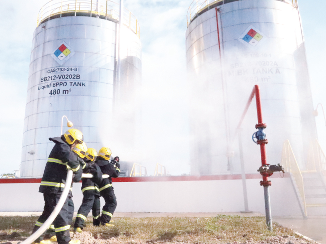 Recently, Sennics Thailand conducted a comprehensive emergency response drill, simulating an emergency scenario of a leak in the outlet pipeline of the methyl isobutyl ketone (MIBK) storage tank in the raw material tank area. The drill was aimed at comprehensively testing the company's emergency plan for its relevance, practicality, and operability, further enhancing employees' risk prevention awareness, self-rescue and mutual aid capabilities, and emergency response skills. The firefighting team of the Rojana Industrial Park and the emergency rescue association of the Rojana Bowin Industrial Park participated in the drill.