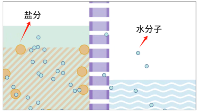 把苦咸的海水变成甘冽的淡水,依靠的是膜法海水淡化技术。膜法海水淡化技术涵盖混凝、沉淀、过滤、脱盐、调质等一系列精细处理环节,而反渗透脱盐是其中最重要的一环。反渗透膜元件是海水淡化系统的“核芯”,它由反渗透膜片、进水隔网、产水导流布和中心管等部件组成,其中反渗透膜可有效阻截离子,从而起到脱盐作用。反渗透脱盐是一种物理过程,即在压力的驱动下,海水中的水分子得以透过膜,而盐离子、有机物、细菌等均被“拦”下来,淡水由此而生。通过膜法获取的淡水非常纯净,盐分去除率高达99%以上。