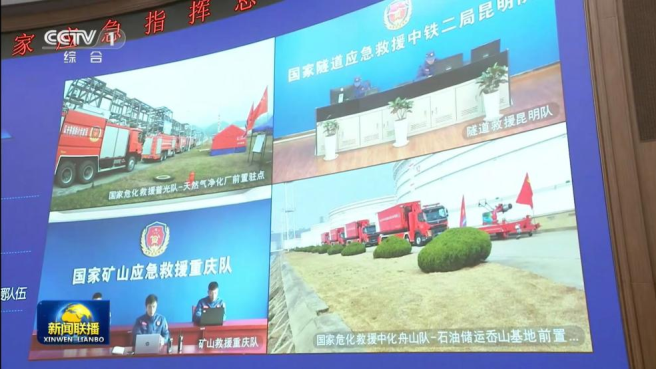 国家危险化学品应急救援中化舟山队作为国家安全生产专业应急救援队伍代表参加视频连线。
