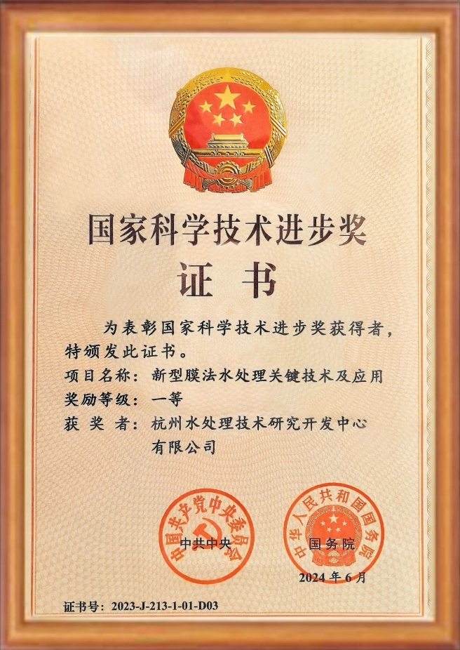 作为中国膜分离技术的发源地,杭州水处理此次为第二次获得国家科学技术进步奖一等奖。早在1992年,杭州水处理就凭借“国产反渗透膜装置及工程技术开发”项目获得该奖项。此外,杭州水处理还曾获得国家技术发明奖二等奖、国家科学技术进步奖三等奖。