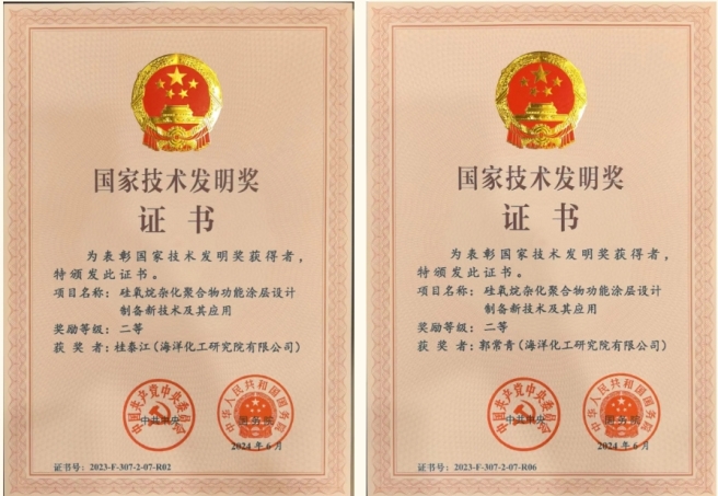 中国中化所属海洋化工研究院有限公司(简称“海化院”)等单位完成的“硅氧烷杂化聚合物功能涂层设计制备新技术及其应用”项目荣获2023年度国家技术发明奖二等奖。