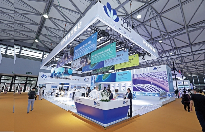 本届展会由中国石油和化学工业联合会主办,中国国际贸易促进委员会化工行业分会和中国化工信息中心共同承办,中国中化携旗下鲁西集团、天华院、中化信息展出一系列化工新材料、高端装备和化工行业数字化解决方案。中国中化副总经理、党组成员、首席技术官张方陪同中国石油和化学工业联合会原会长李勇武,副会长兼秘书长赵俊贵一行到中国中化展台巡展。